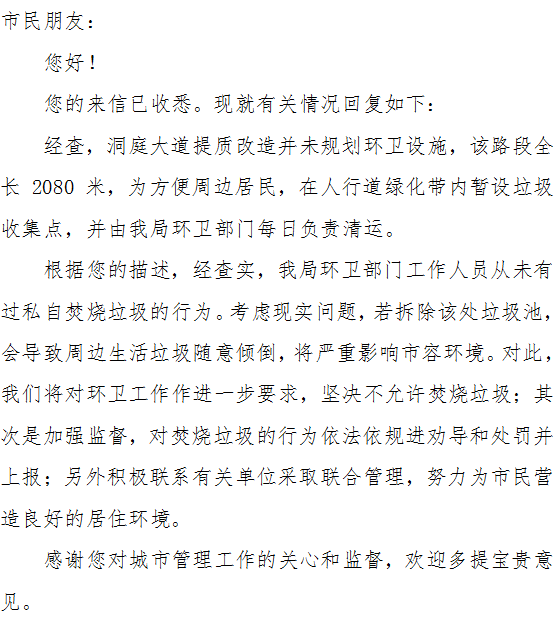 | 回复部门: | 市城管局 |